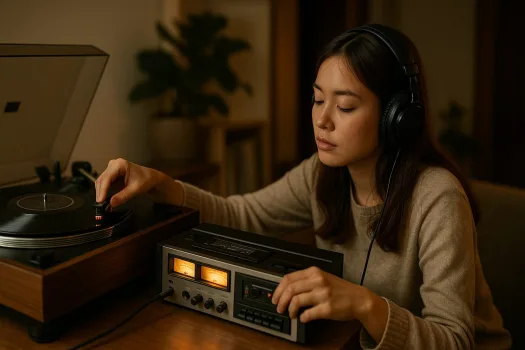 オープンリールでの録音は、糸掛けから始まる小さな儀式です。ガイド、ヘッド、キャプスタンへとテープを通し、録音待機で入力を確かめてからRECとPLAYを同時に押す。速度は速いほど高音質で再生時間は短く、ゆっくりにすれば長時間録れます。迷ったら19cm/sから。最初の一台は整備情報が豊富で部品の流通がある定番機を選ぶと安心です。操作の所作そのものが音楽体験の一部になっていきます。
