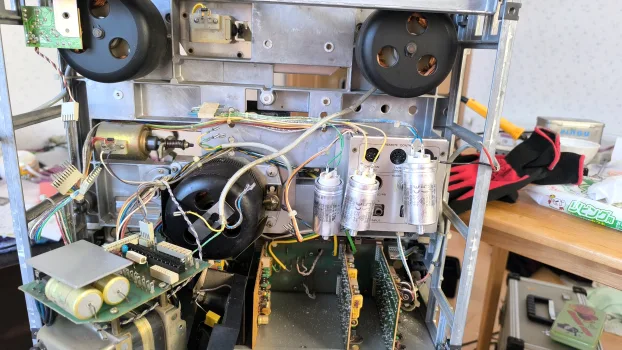 この複雑精緻な機構とアナログ回路を、ネジ一本、コンデンサの一つまで完全に分解し